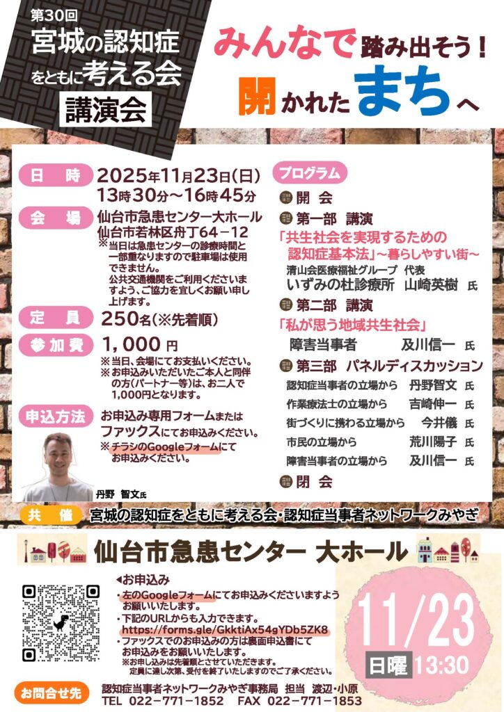 共 催:宮城の認知症をともに考える会/認知症当事者ネットワークみやぎ